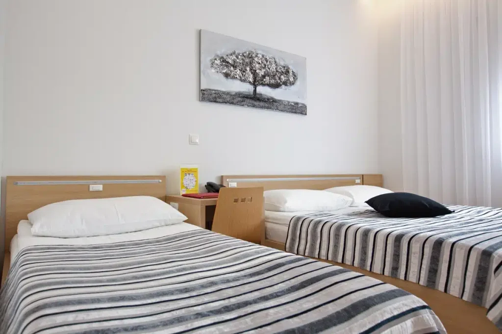 Moderno uređena obiteljska soba koja se sastoji od dvije, međusobno spojene sobe, sa zajedničkom kupaonicom.